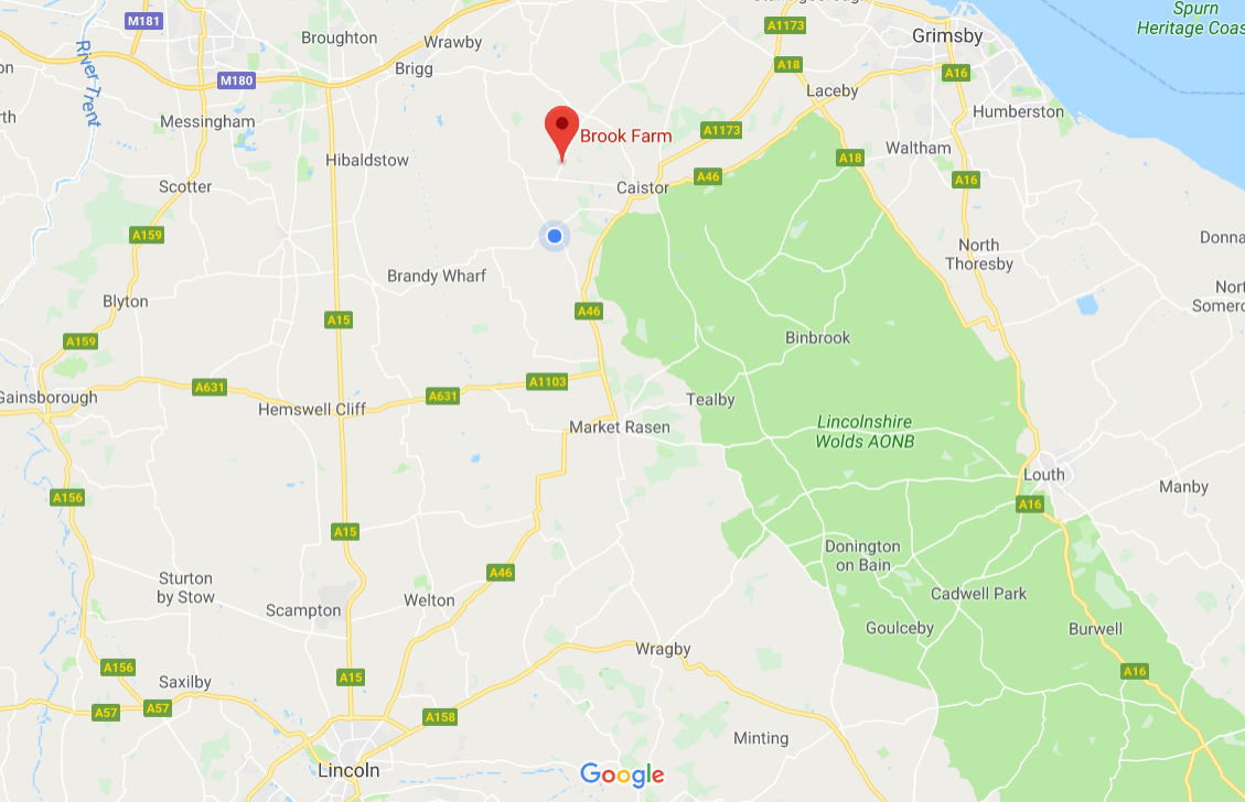 From Market Rasen - Take the A46 to Caistor, after passing through Fir Park turn left taking the B1434 to Brigg, at North Kelsey Moor turn right towards Caistor (follow sign for Queens Head public house, after the level crossing, past the Queens head on left, take the next left at cross roads towards Grasby. Brook Farm is situated ½ mile on the right.